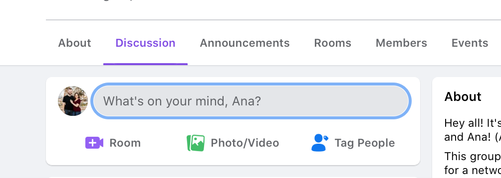To create a post, go to your group’s discussion tab, and then click on the “What’s on your mind” prompt.