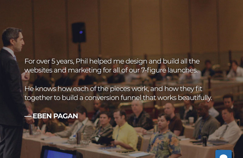 A good example of this is a testimonial from Eben Pagan on the Lift Media homepage.