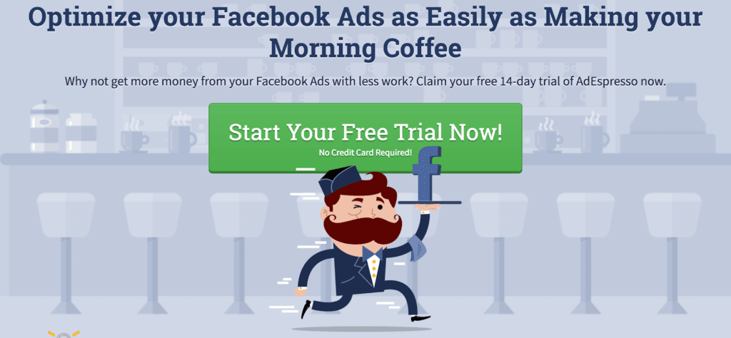 You can break down these three elements in all good copywriting. Let’s take a look at how AdEspresso does this on their homepage: