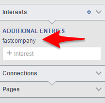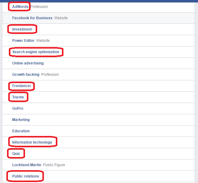 When you’re searching for interests, Facebook has keywords just like Google. However, on Facebook, it’s words that they put on your profile to fit you into a “box” that advertisers can target. This is based on your behavior, on which fan pages you like and on lots of other variables.