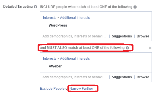 You can apply this when you look for targeting ideas such as influencers, events or magazines. Instead of just targeting Bubba Watson, you can expand to also target people who like both Tiger Woods AND Bubba Watson. That allows you to just grab the hardcore golfing fans who are part of the Tiger Woods fan page.
