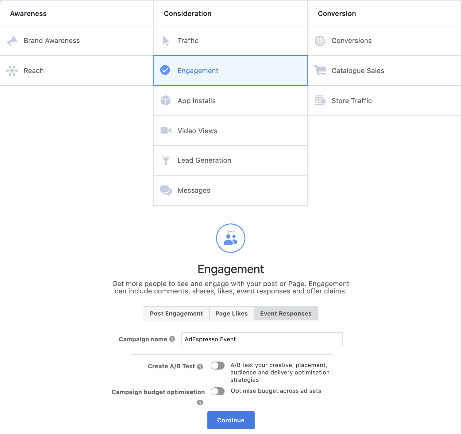Start by choosing the Engagement campaign type and then Event Responses as the engagement type.