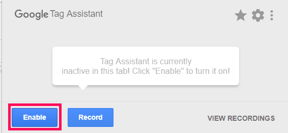 Click the icon and make sure you enable Tag Assistant for the tab in question.