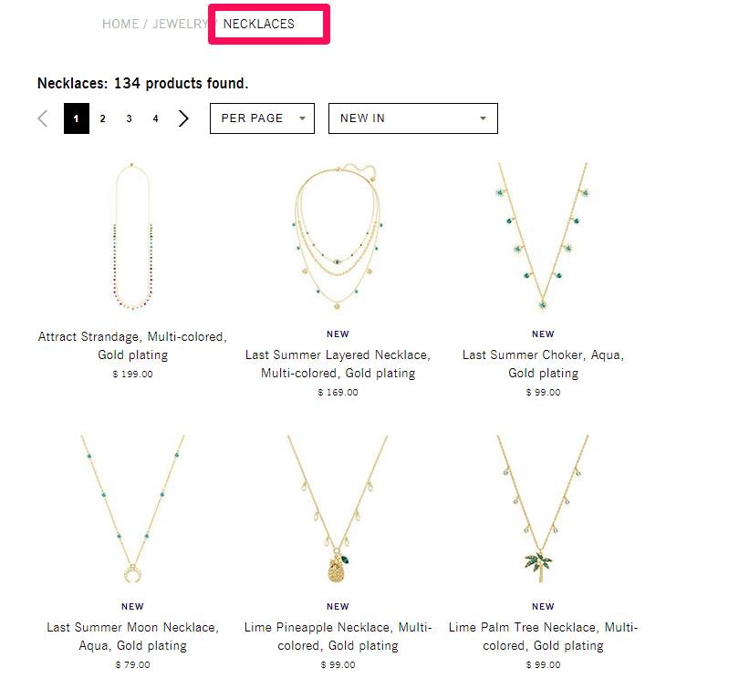 Instead of directing me to their homepage or “Jewelry,” they sent me directly to the necklace section.