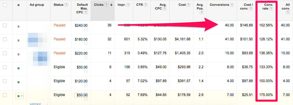 You could be generating next to no conversions for your money, and you’d have no clue as to why it’s happening. One ad group could spend most of your budget with little to no effect. Another neglected ad group with low bids could be bringing in all your conversions.