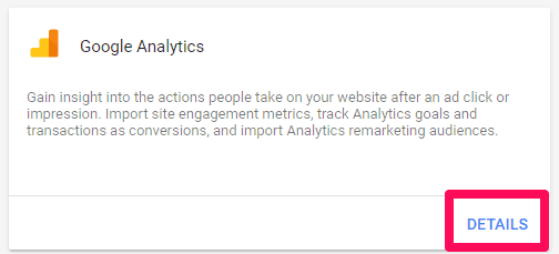 From here, click “Details” under Google Analytics to the top left, and follow the linking process to connect your accounts: