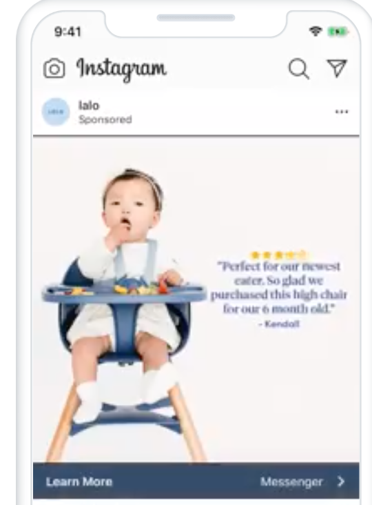 Lalo sells baby items, and they were featured in a Facebook Ad case study for their genius use of click-to-message ads.